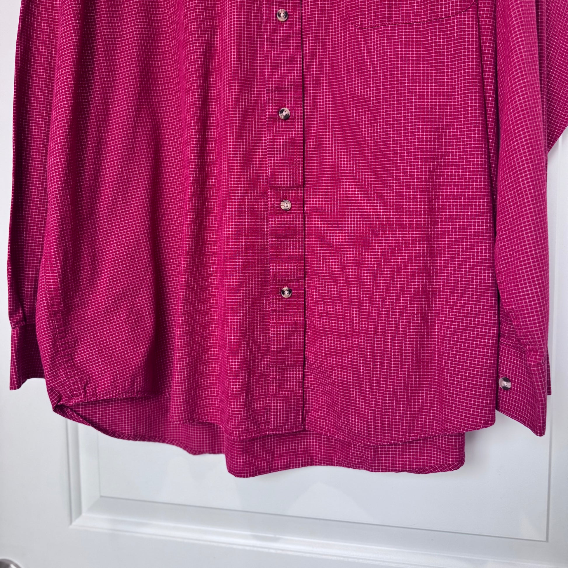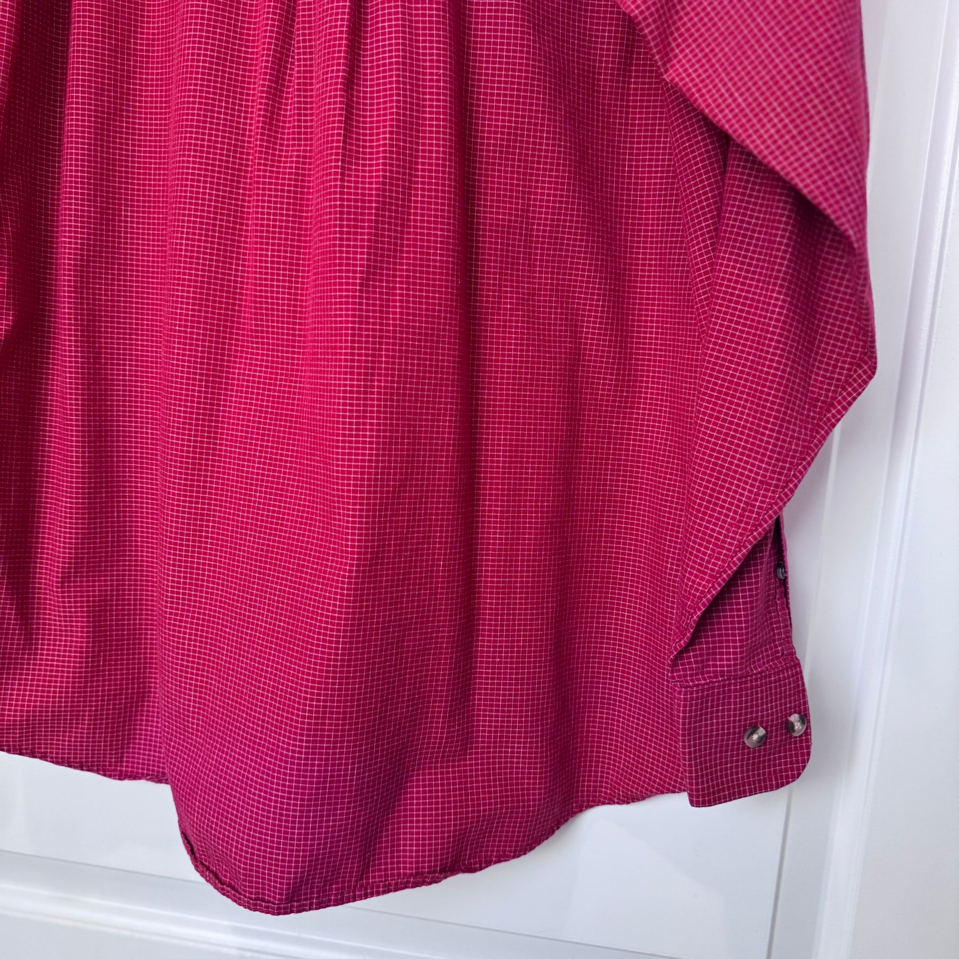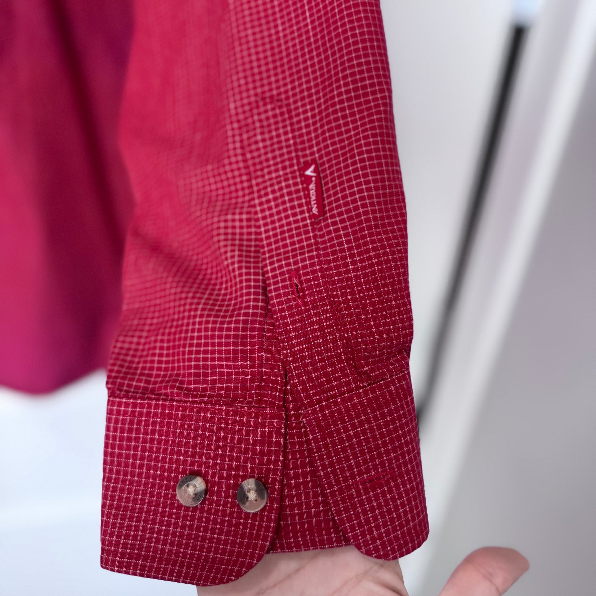 - Color: Red with subtle white check pattern