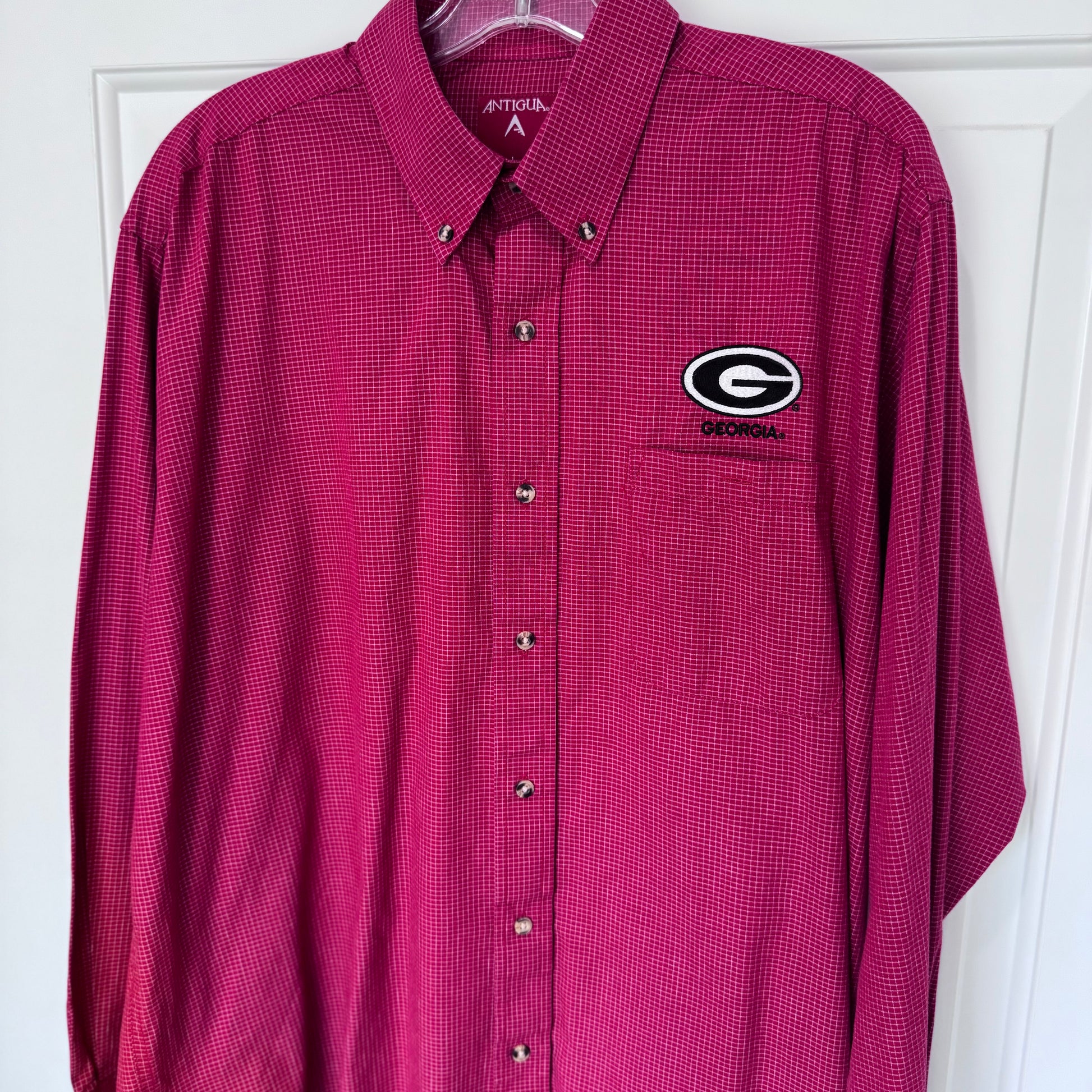 Antigua University of Georgia Bulldogs Button-Down Dress Shirt | Red Grid Check | Men’s XL Long Sleeve