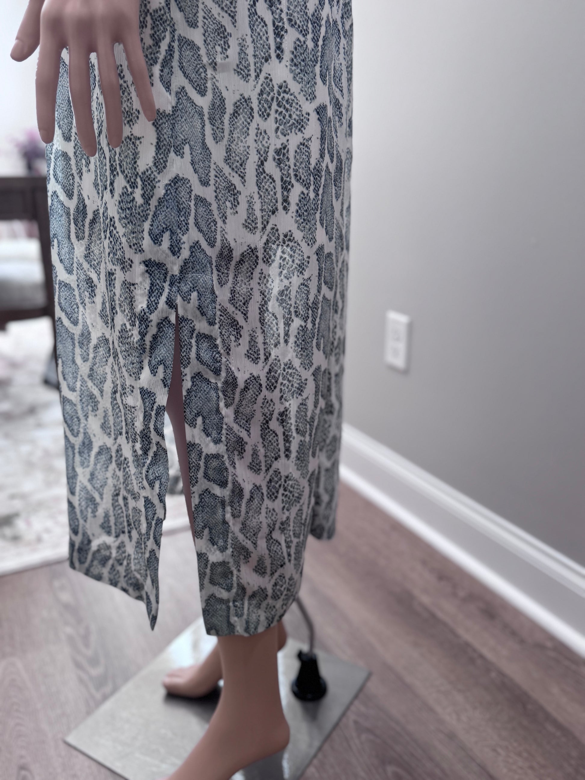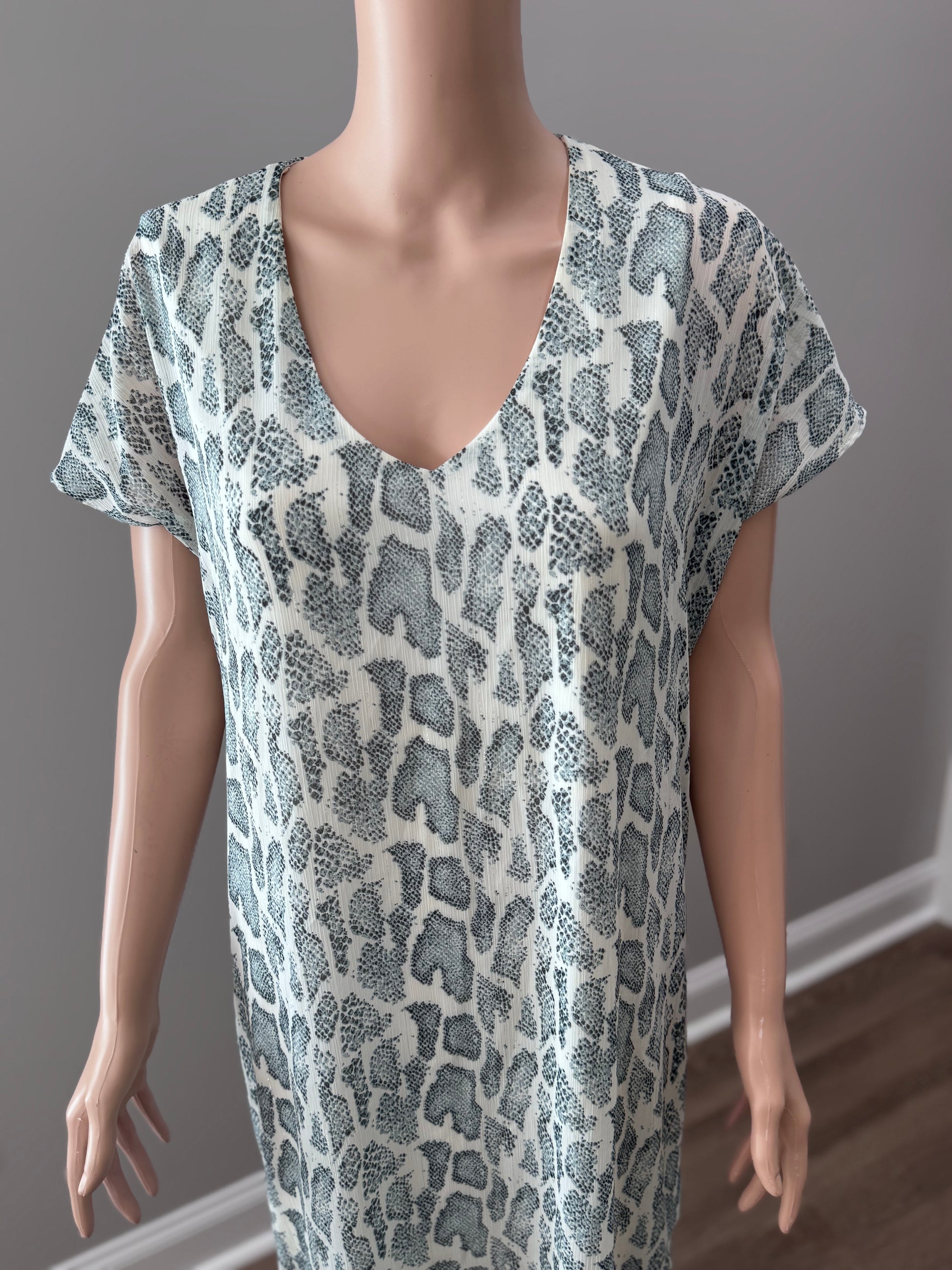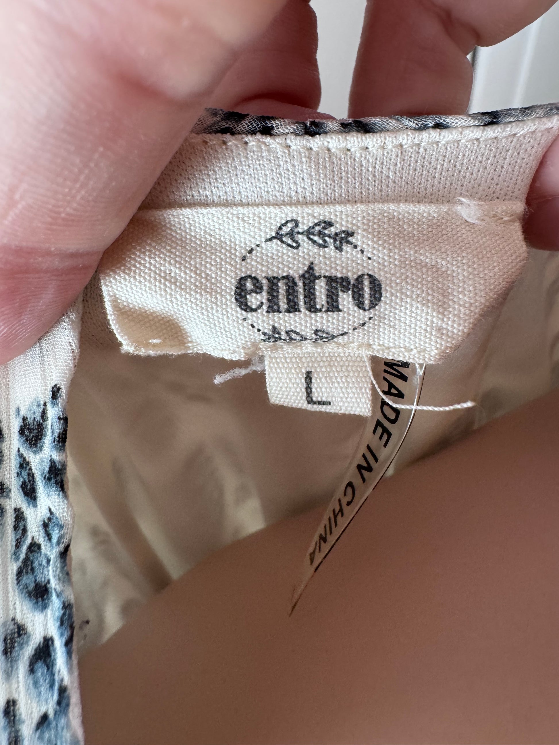 Entro Women’s Maxi Dress L – Blue Animal Print, Short Sleeve, Lined