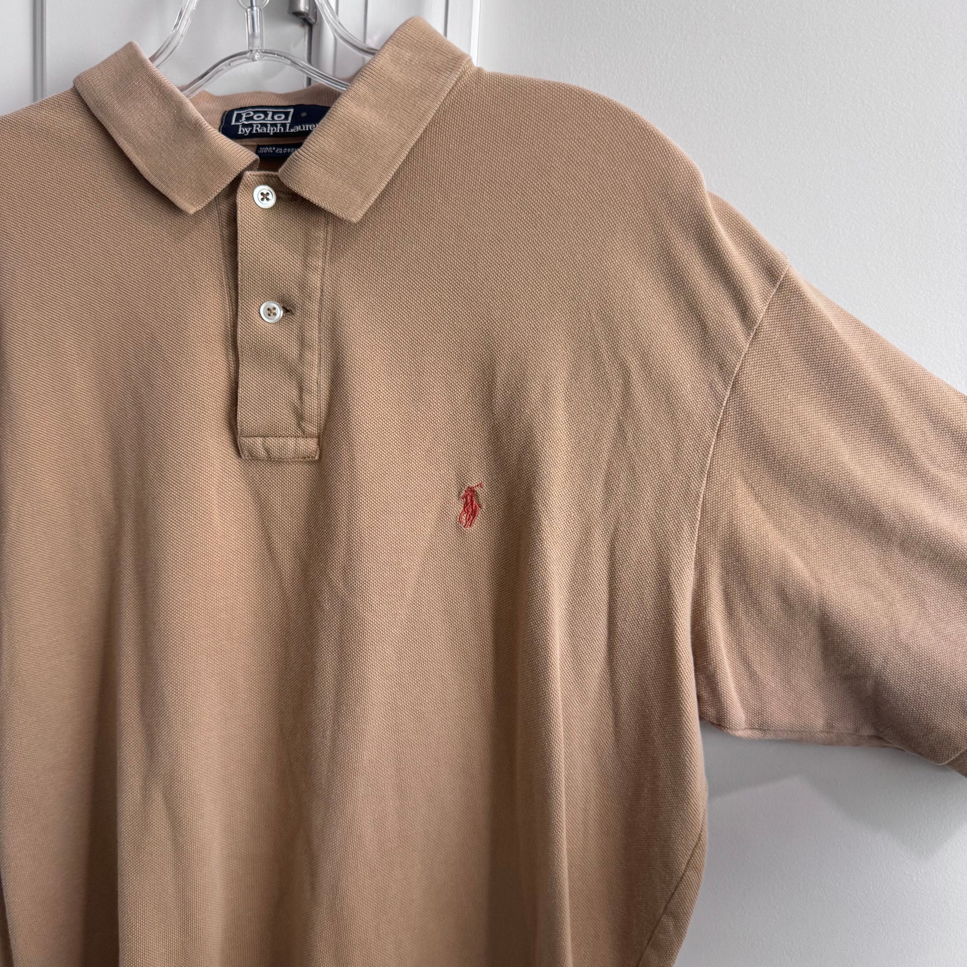 Polo Ralph Lauren, Classic Fit Polo, Beige Tan Polo, Made in Peru Cotton Shirt, Men’s Preppy Style, Casual Polo, 90s Y2K Polo, Vintage Ralph Lauren Polo Shirt, Polo Pony Logo