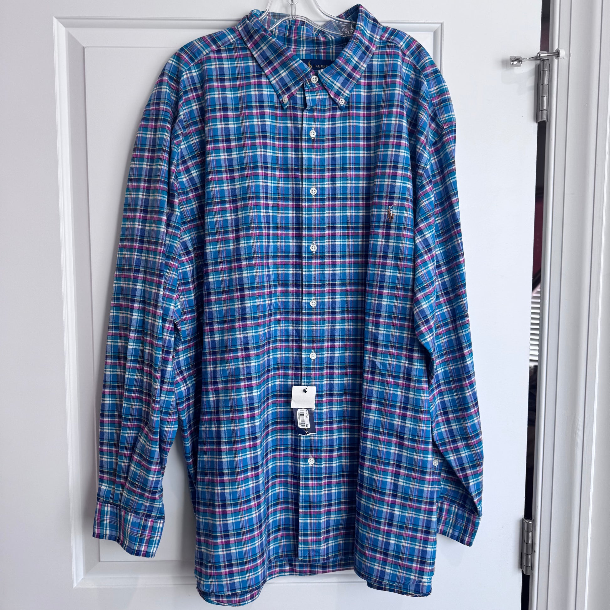 Polo Ralph Lauren Men’s Classic Fit Plaid Long Sleeve Shirt – Size 3XB (Big) – Green/Teal Multi